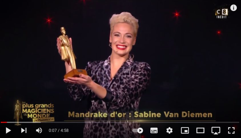 Sabine van Diemen heeft de Mandrakes d’Or 2021 gewonnen. Een prestigieuze prijs in Frankrijk welke vanaf 1990 wordt uitgereikt. Na een stemming onder een groot aantal Franse goochelaars is haar … Lees verder…