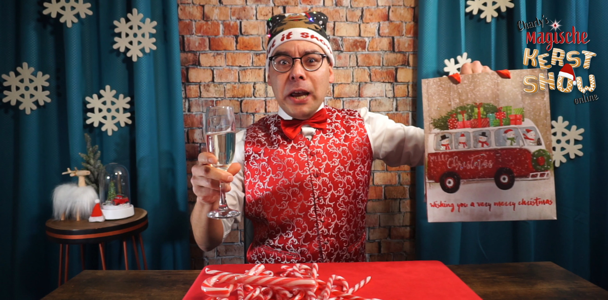 Een online kerstshow vol magie. Wat moet ik mij daarbij voorstellen? Geen idee, ik ga zitten en laat het op mij afkomen, maar wat moet dat ontzettend spannend zijn voor Charly om te doen.