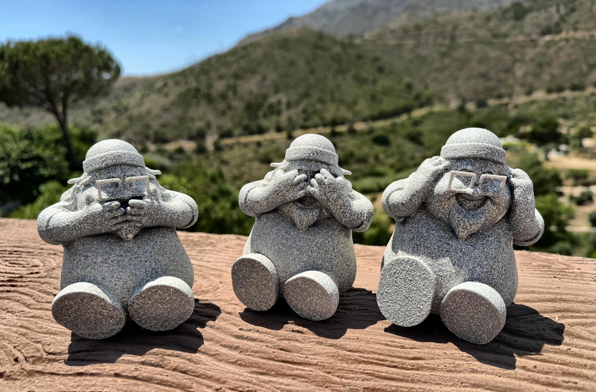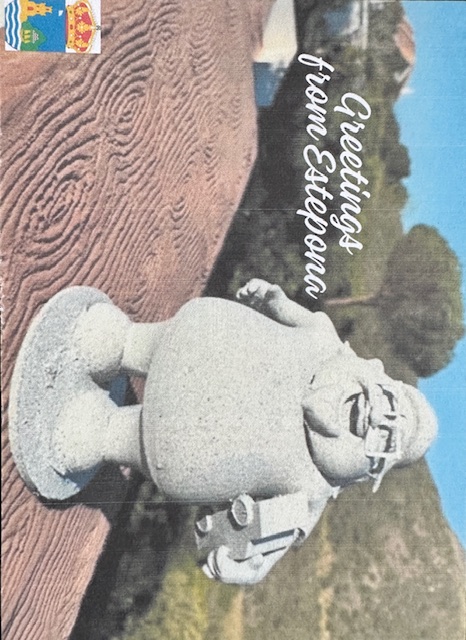 Dani’s antwoord was een mooi bruggetje naar een door mijzelf ontworpen ansichtkaart waarop een beeldje met de gelijkenis van Dani staat met een ‘Dick Koornwinder car’ onder zijn arm en de tekst; Greetings from Estepona. Dani verklaart de Koornwinder auto omdat Tamariz hier mee heeft gewerkt maar ook omdat hij zelf als klein kind met de Sinclair Spectrum computerspelletjes ontwierp en de auto dan de hoekige vormen in het computerspel had en het beeldje een beetje lijkt op het karakter van de speler toen. Mijn vraag op de kaart: Stel  dat de burgemeester hem benoemd als ereburger van Estepona en een standbeeld plaats. Wat komt er dan op de plaquette te staan. Dani antwoord na enig nadenken: “Vivío de y para la magia” oftewel hij leefde van en voor de magie.