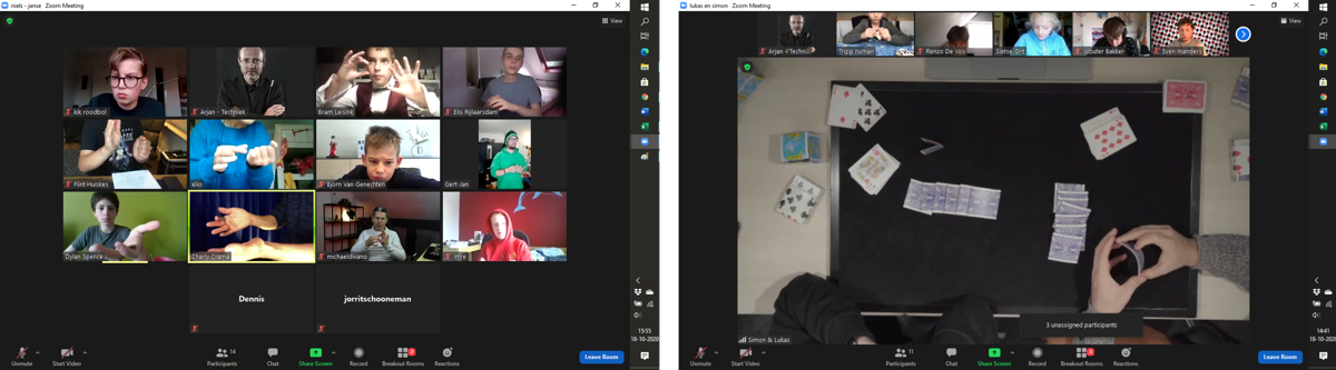 Dylan: Ik vond het echt heel leuk om alle goochelaars weer te zien. Ik miste wel de slapeloze nachten en het delen van coole trucs met goochelvrienden, maar het was wel iets nieuws en aparts om online mee te doen.