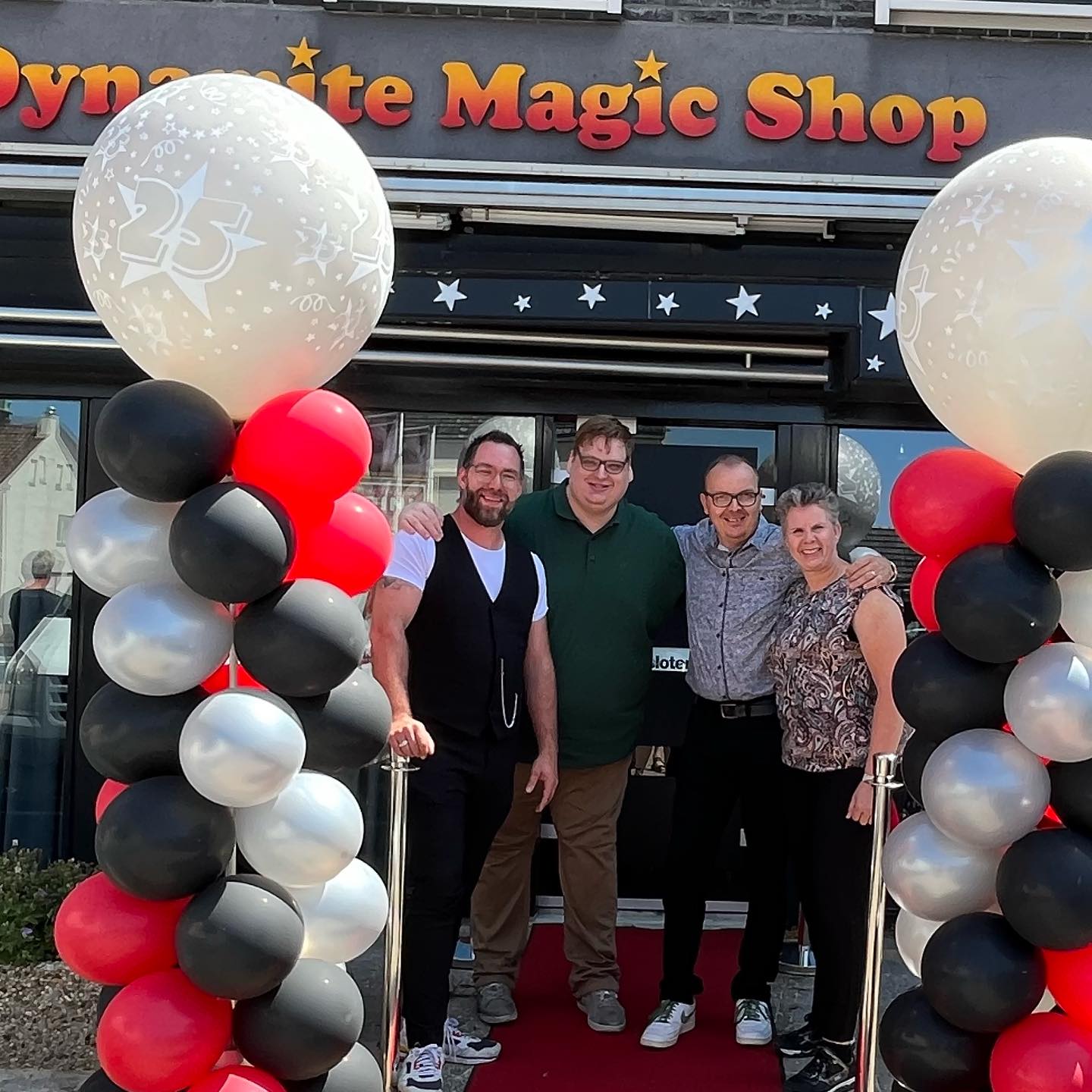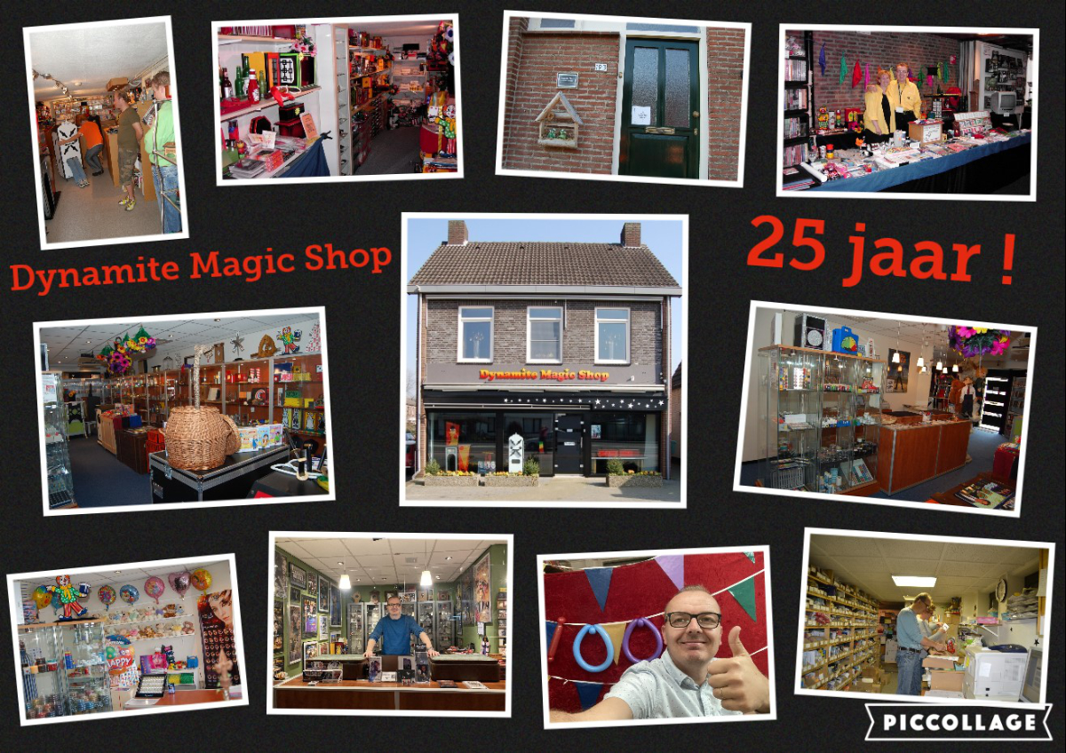 Op 1 juni bestond Dynamite Magic Shop 25 jaar! Dat laat je niet zomaar voorbijgaan! En terecht! Rene Geelen heeft in de afgelopen week zijn mooie jubileum mogen vieren en deed dat met een feestelijke winkeldag. Iedereen die deze dag de moeite had genomen om af te reizen naar Velden werd hartelijk verwelkomd met koffie en gebak en kon gebruik maken van aantrekkelijke acties bij aankoop van nieuwe magische zaken. De weg naar de winkel werd door velen in ieder geval gevonden, want een volle winkel bewees dat velen uit het land en directe omgeving van Velden getuige wilden zijn van 25 jaar Dynamite Magic Shop