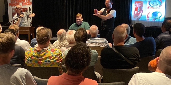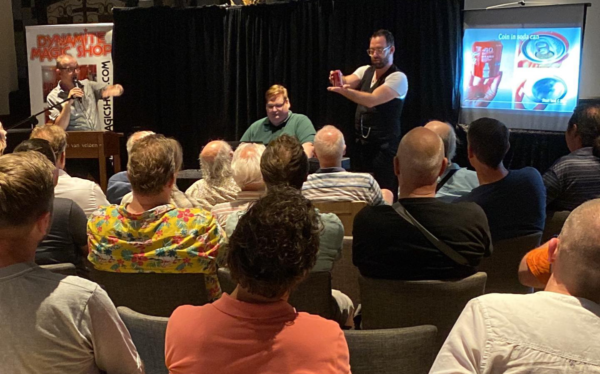 De afsluiting in de avond werd ingeleid met een veiling. Daarna volgde een zeer boeiende lezing van creatief bedenker van zeer sterke en visuele effecten Mickael Chatelain. En wat een succes was deze keuze. Chatelain is een zeer aardige Fransman die inderdaad bewees zeer sterke effecten te kunnen bedenken die ook echt goed bruikbaar zijn. Uiteraard met behulp van gimmicks, want daar staat Chatelain om bekend.