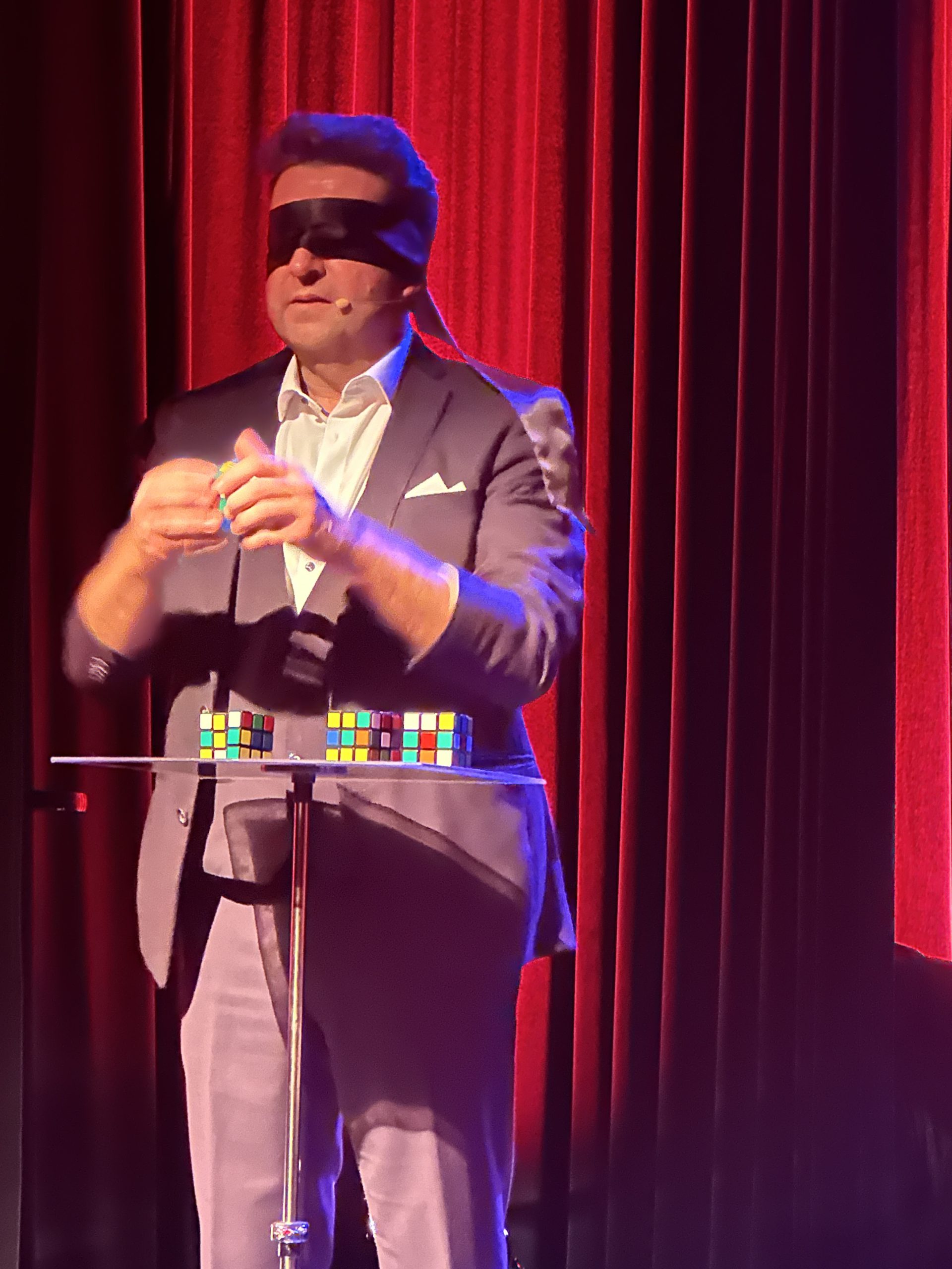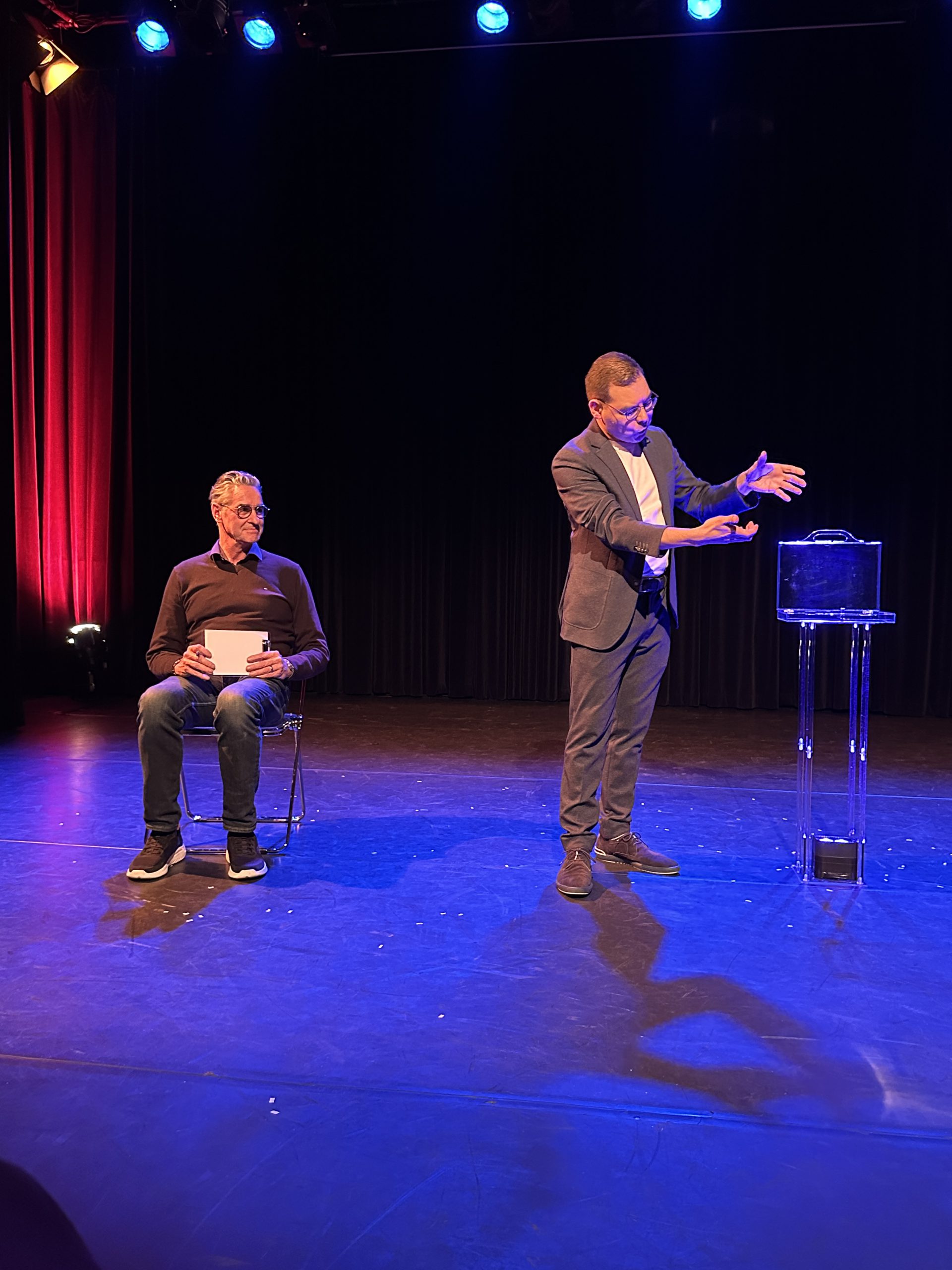 Charly Crama bracht het verhaal van de verbeelding, met een mentalisme act. In een transparante koffer met dito fotoboek en pen nam hij iedereen mee op zijn persoonlijke reis boordevol momenten.