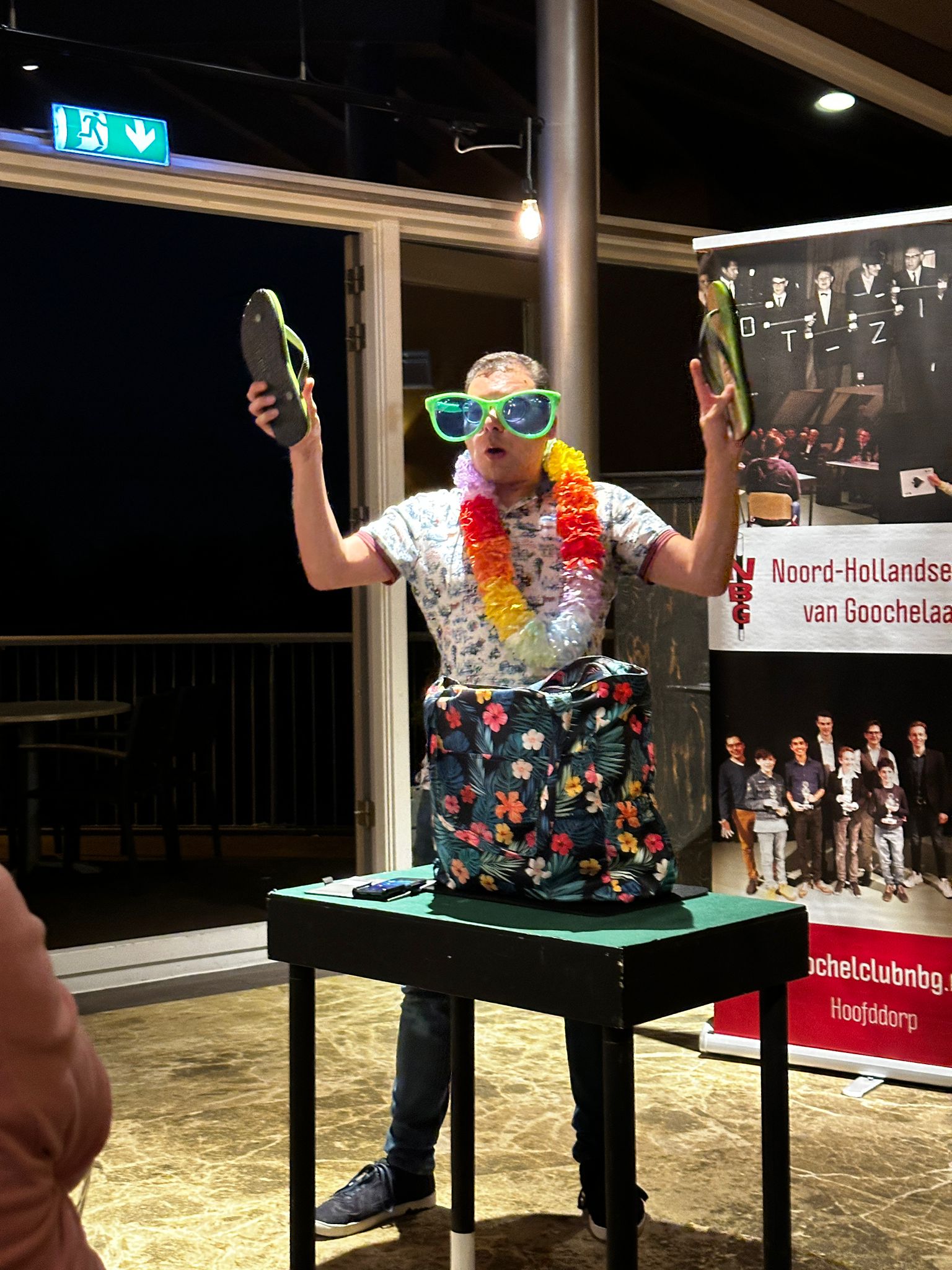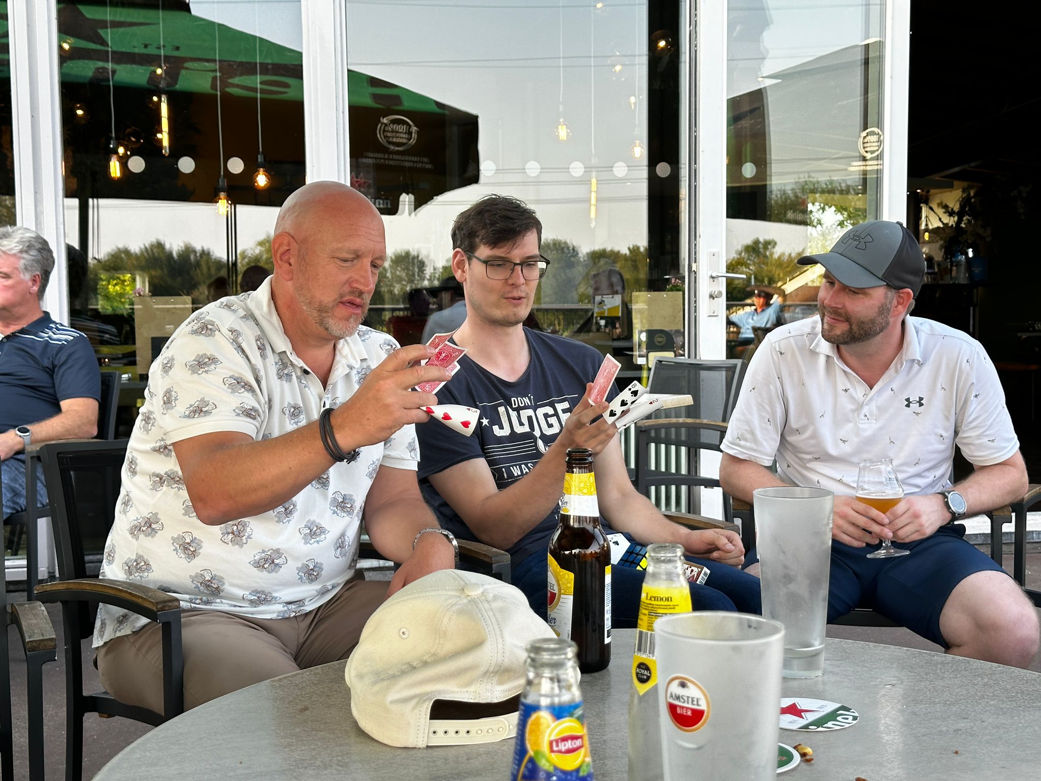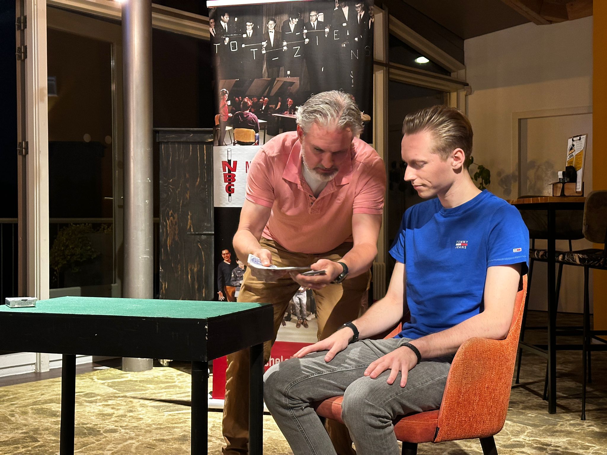 Na een inspannende middag kwam iedereen uiteindelijk weer bij het clubhuis aan en meteen kwamen de kaarten, munten en andere trucs weer tevoorschijn en dan moest de avond nog beginnen! Na het diner van de golfende goochelaars kwamen ook de andere leden van de Noord- Hollandse Bond van Goochelaars (NBG) naar Heemskerk om daar onze maandelijkse clubavond te houden en dat werd een feest!