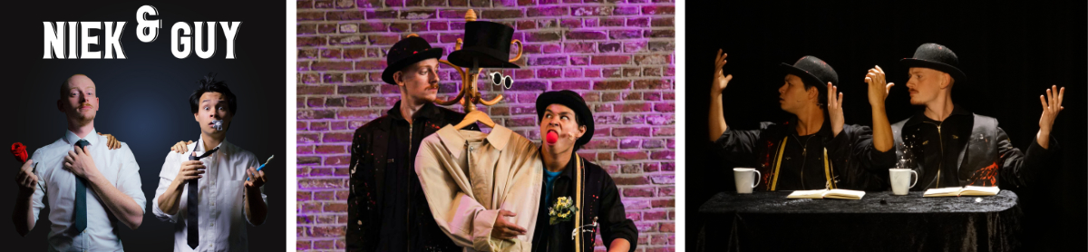 Niek & Guyllaume kennen elkaar al heel lang via de Dutch School of Magic en zijn daar altijd gecoacht door o.a. Ger Copper. Met de Ashton Brothers zijn ze een aantal jaren op tournee geweest. Guyllaume speelt nog steeds een belangrijke rol in de voorstelling “Medicine Show’. Maar hij heeft ook de Balletacademie afgerond, speelt in musicals en produceert muziek en schrijft liedjes. Een alleskunner dus!