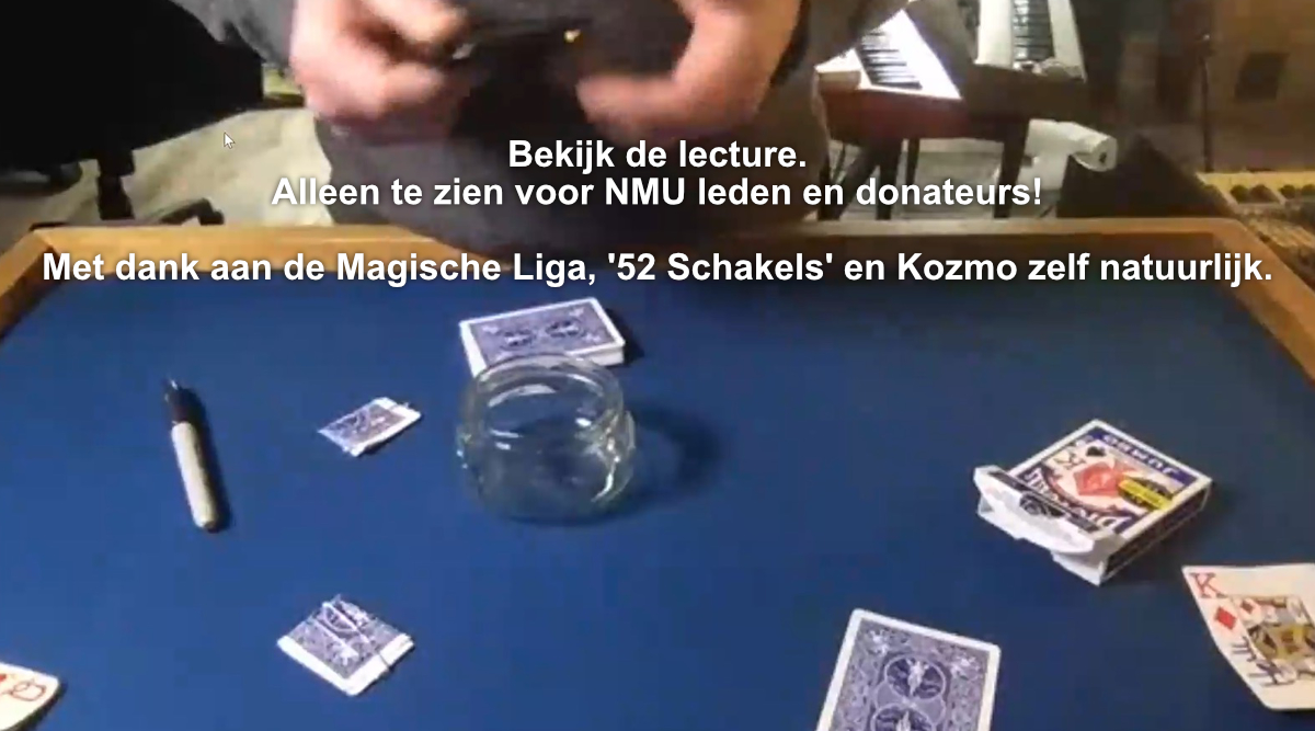 Kozmo heeft ervoor gekozen om zijn tafel een prominente plaats te geven in zijn act, gegeven uit het feit dat hij veel in een restaurant werkte. Was al weer wat tijd geleden dat hij echt op straat had gewerkt, voegde hij toe. Minder enthousiast was hij er niet om. Kozmo liet ons zijn variaties zien op munten routines van John Kennedy en Dean Dill. Visueel en verrassend zeker als je dit soort werk nog nooit eerder gezien hebt! Daarnaast een gesigneerde kaart in een klein jampotje, gebaseerd op ideetjes van Joro, Fred Kaps en Tommy Wonder die allen hun eigen versie daarvan hadden. Kozmo ging uitgebreid in op het leren van een coinroll en een classic palm en vooral hoe dagelijks te oefenen.