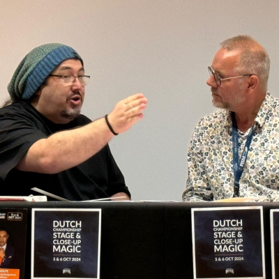 Na een korte break de lezing van Dani DaOrtiz, wat een ge-wel-de-naar en energie. Hij forceerde in twee minuten vijf kaarten bij vijf mensen en dat was ook het thema van de lecture; forcing. Walter Ruflo introduceerde hem als genius en de beste kaartgoochelaar ter wereld dus dat onderschrijf ik direct. Het is onmogelijk de lezing hier te beschrijven maar geweldig was dat hij een jonge goochelaar uit de zaal vroeg zijn vraag op het podium nog een keer te stellen. Voor de beantwoording nam hij alle tijd en vervolgens schoof die jongen ook aan, aan tafel. Dani komt naar het NK in oktober en daar zal ook John Van Der Lely blij mee zijn. Lees zijn recensie maar. Morgen interview ik Dani en heb daar natuurlijk een creatieve insteek voor bedacht. Hij zal verrast worden. Ik ben benieuwd.