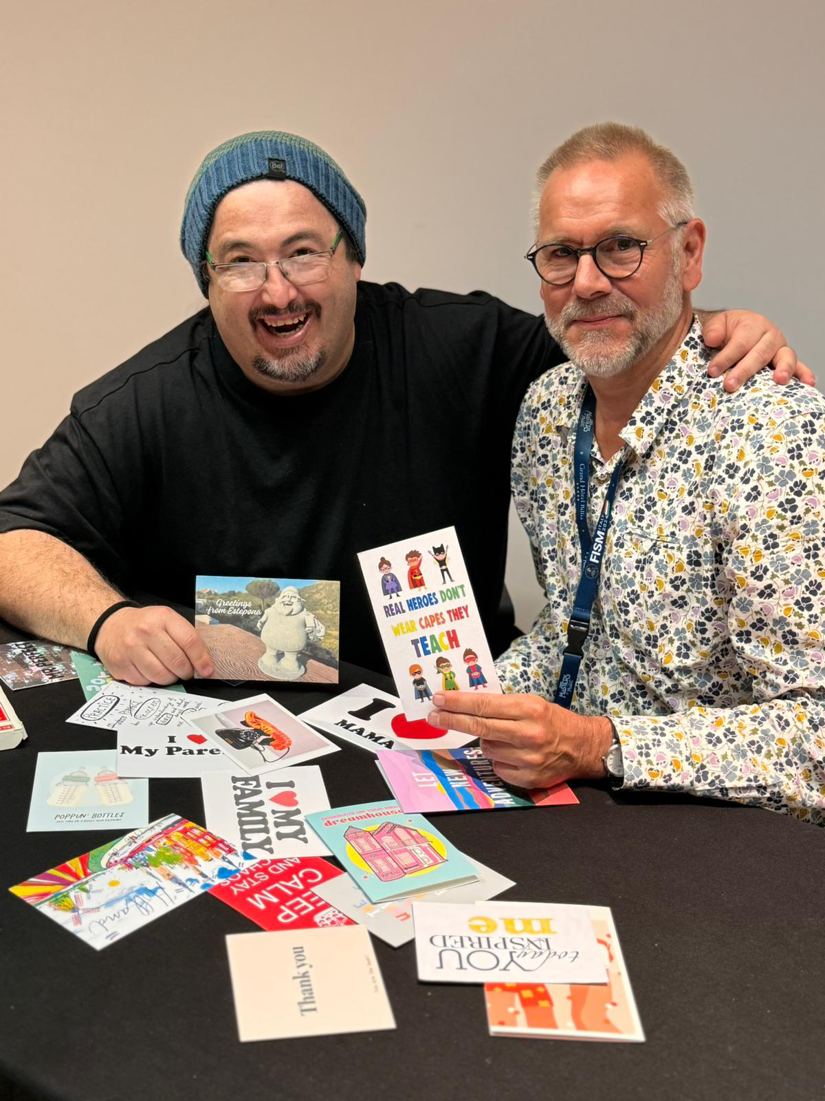 Om 17.00 uur had ik een afspraak met Dani DaOrtiz. Ik interviewde hem in mijn reportagereeks; “De weg naar het podium met…” Dani is één van de beste of misschien wel de beste kaartgoochelaar ter wereld. Mijn creatieve insteek dit keer was dus met kaarten te werken. Niet met Bicycle kaarten maar wens-en ansichtkaarten. Op zijn Dani manier deed hij een shuffle en op de achterkant stonden vragen over zijn meesters, zijn Magic family, zijn Penn & Teller ervaringen, zijn leven. Het interview zal te lezen zijn op het digitale vakblad Informagie en vast ook in het Benelux magazine Escamoteur. Dani zal naar Nederland komen op 5/6 oktober voor een close-up show op zaterdag en lezing op zondag. Kaarten zijn te koop op www.nmumagic.nl Tatatata….zou Dani zeggen!
