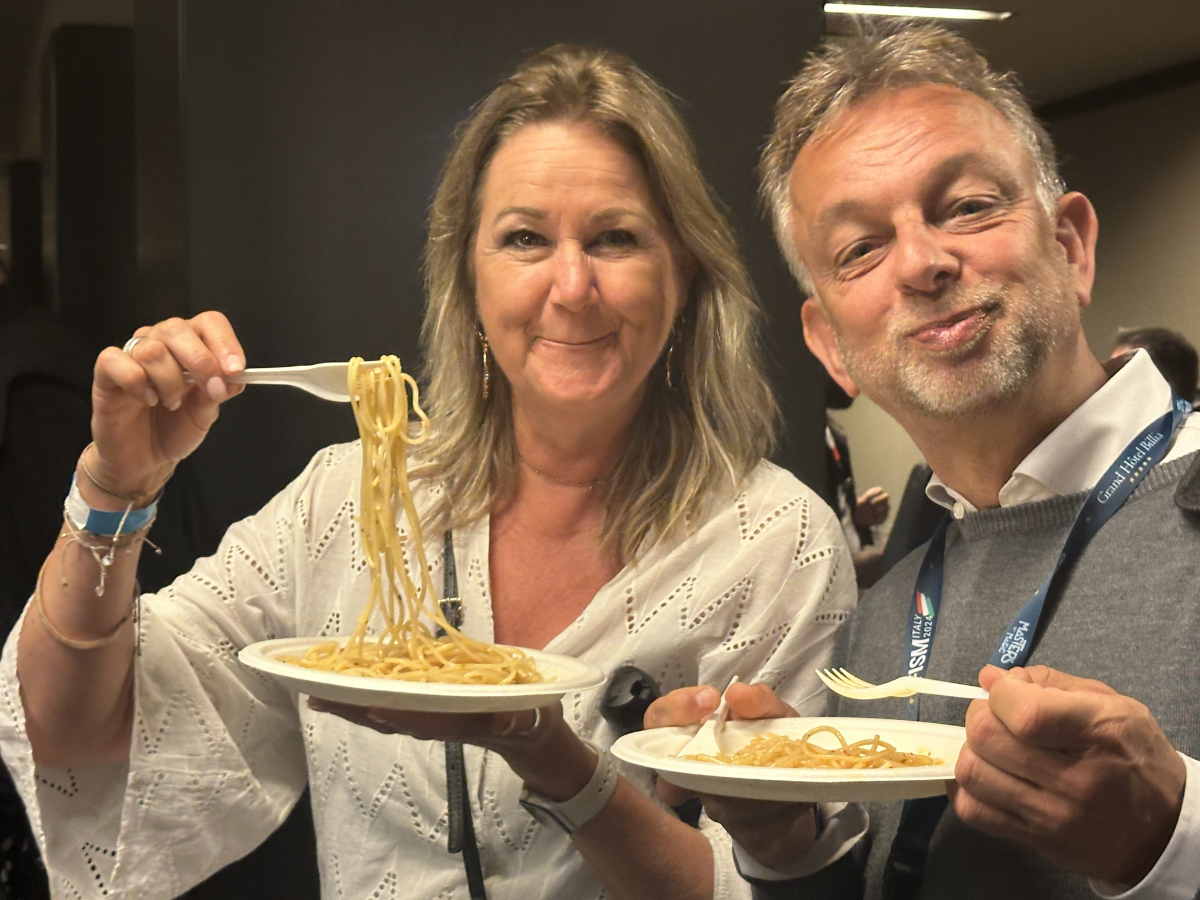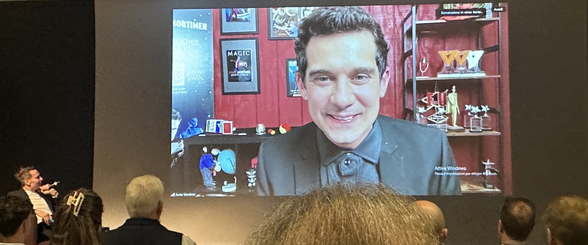 Heel leuk was ook de grote organisator achter de Masters of Magic te spreken; Walter Rolfo en zijn trotse ouders. Hoe mooi dat ook zij dit event kunnen meemaken met ca. 1.000 bezoekers. Naar het hotel is het twee minuten lopen en dat is nu wel heel prettig want de wekker gaat morgen weer vroeg. Om 9.00 uur de eerste lezing van Francesco Fontanelli (card-magic) , in de middag de openingsshow met o.a. Francesco Della Bona, Laurent Piron en David Stone. Einde dag begint de stage competition. Genieten dus van ‘s morgens vroeg tot ‘s avonds heel laat… A domani!
