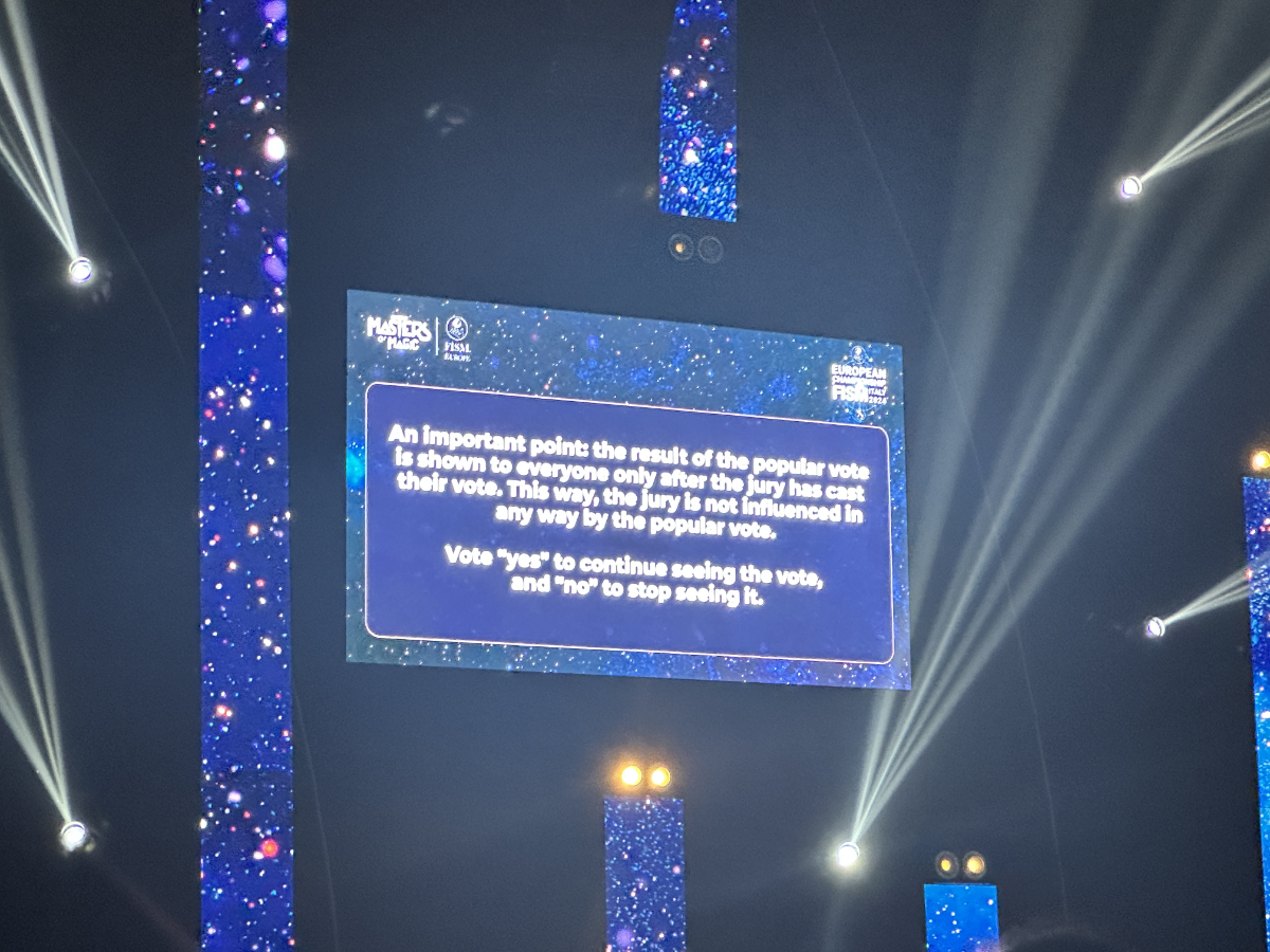 Tussen de acts door kwamen ‘living legends en FISM-winnaars aan het woord zoals Stan Allen (hoofdredacteur Magic), Chris Ramsay, Luis de Matos, Vito Lupo, Laurent Piron, Alexandra Duvivier over de waarde van het FISM. De rode draad door alle verhalen was vriendschappen maken, inspiratie krijgen, het familiegevoel. Een emotioneel moment was toen Topas vroeg te gaan staan voor één minuut stilte voor het verlies van Max Maven (21-12-1950/1- 11-2022). Daar was eerder goed over nagedacht want daarna klonk geen harde muziek maar een ingetogen ‘A Sky Full of Stars’ van Coldplay, rillingen. Het deed mij beseffen hoe bevoorrecht ik ben dat ik hier mag en kan zijn.