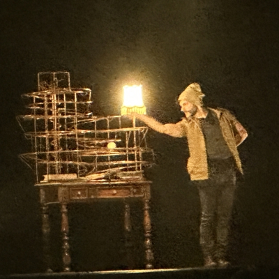 Ook heel bijzonder was Jörgen Sondell die dobbelstenen de hoofdrol gaf. Dan waren ze groot, dan klein, dan rood, groen of blauw of helemaal verdwenen. Prachtig.