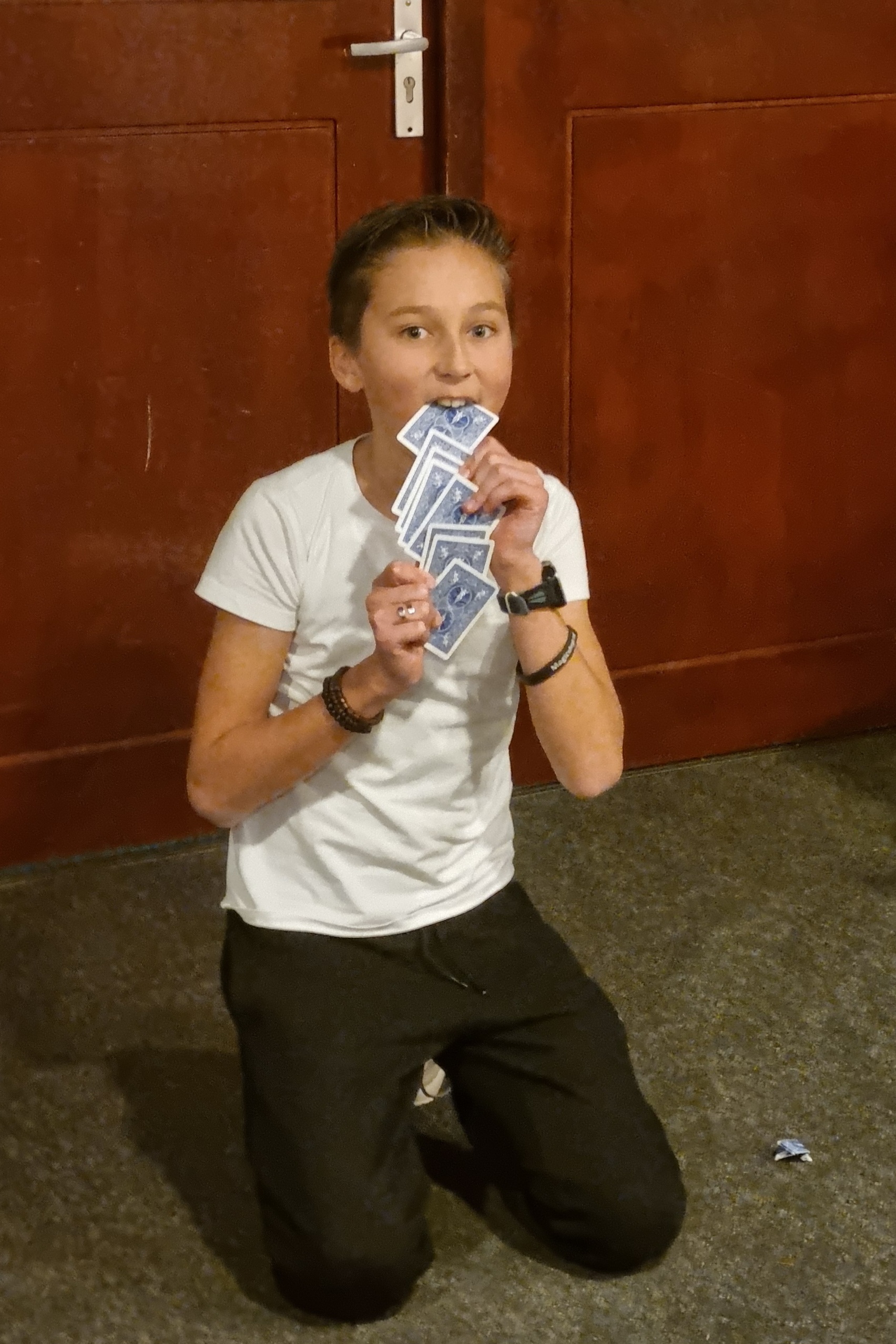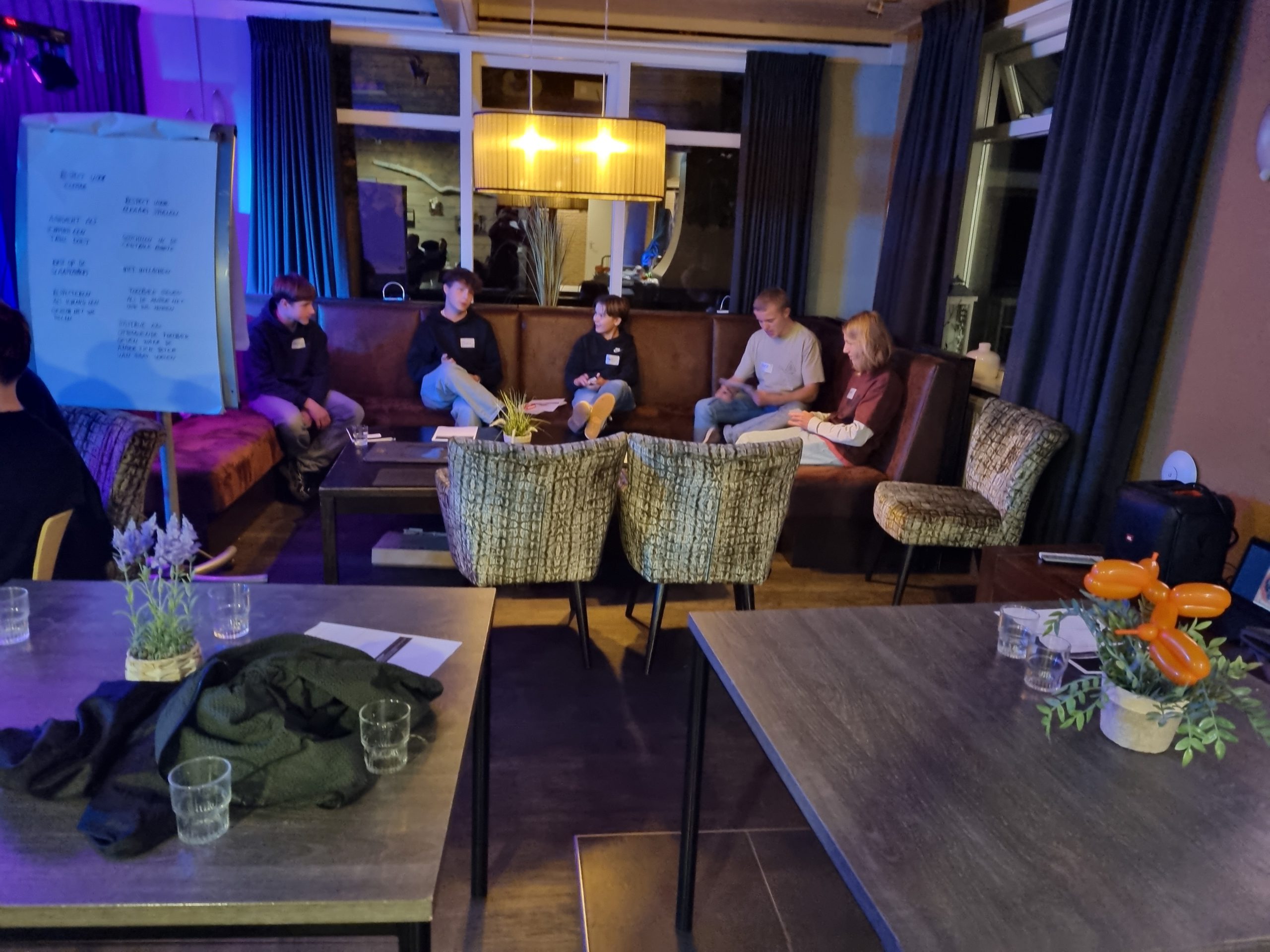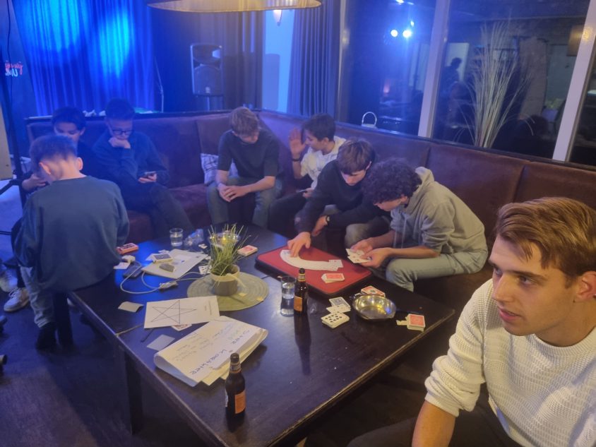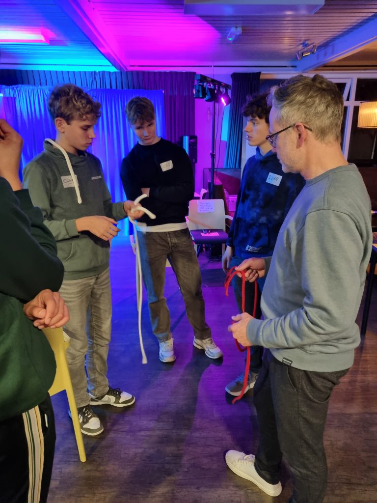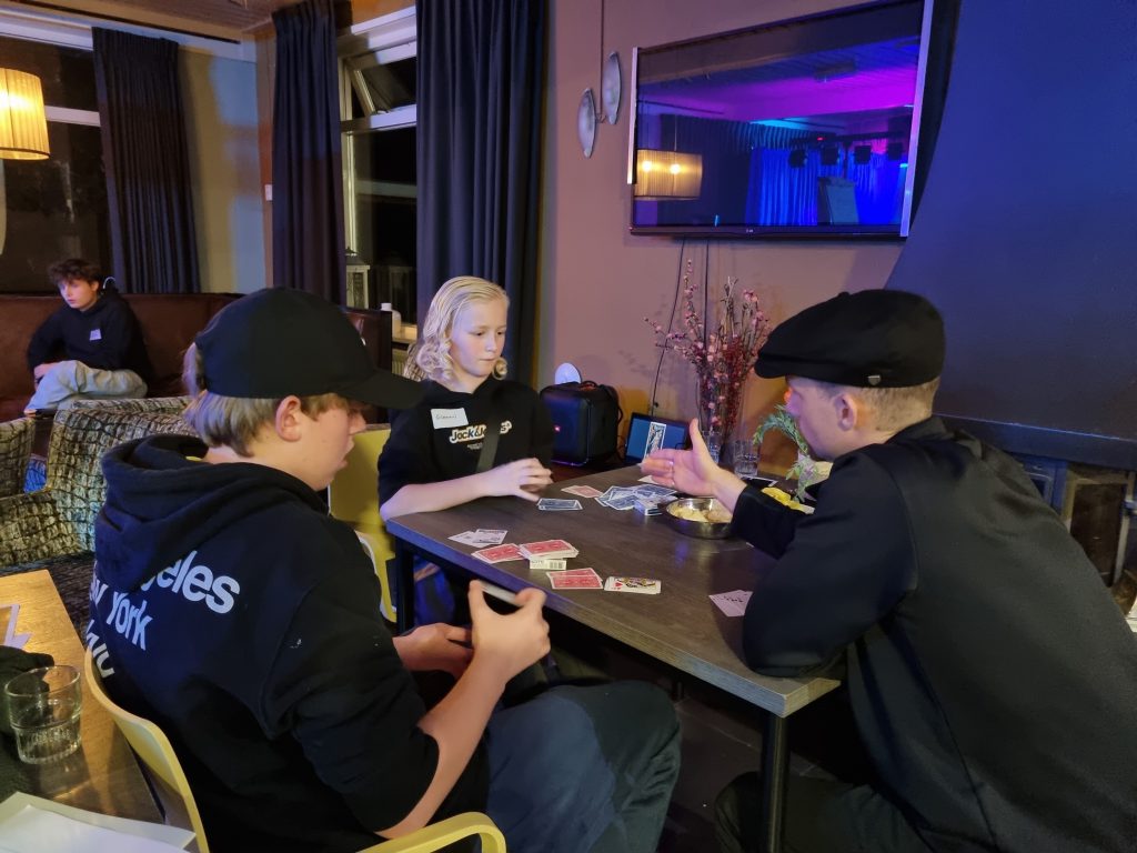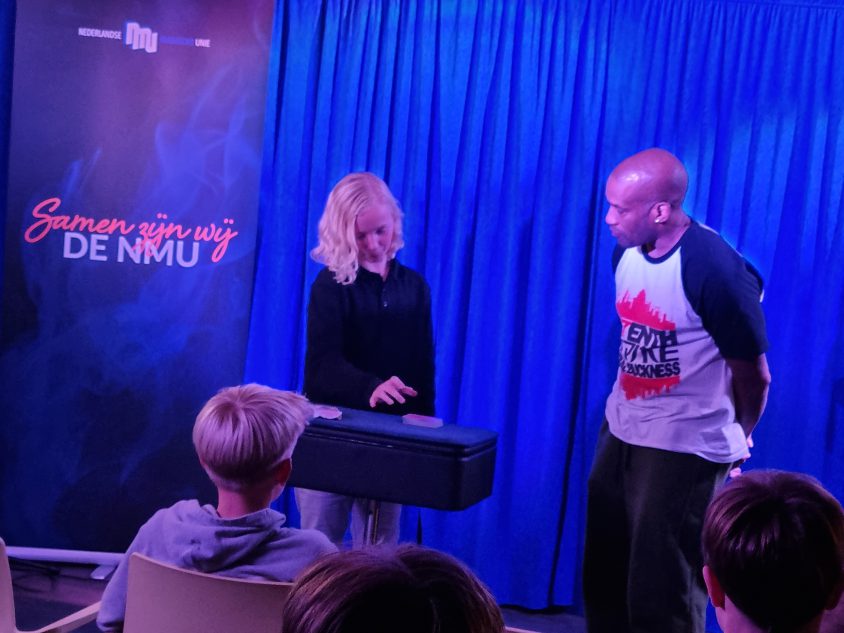 Aansluitend werkten de deelnemers onder leiding van Woedy Woet en Hilbert aan hun eigen trucs. Diverse deelnemers lieten hun acts zien en kregen direct feedback. Dit is altijd een prachtig onderdeel van het weekend, omdat iedereen niet alleen leert van zijn eigen optreden, maar ook van het meekijken bij anderen. Woedy en Hilbert voelen zich als vissen in het water op zo’n jeugdweekend. Hun praktijkervaring, kennis en kunde maakt de feedback bijzonder waardevol.