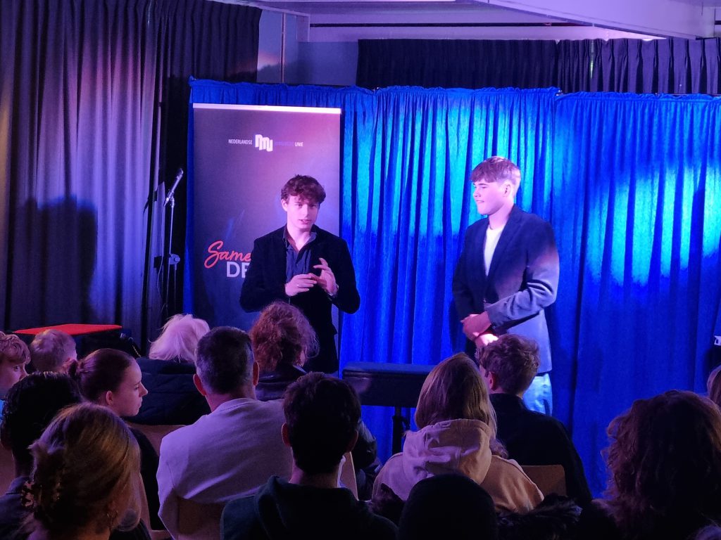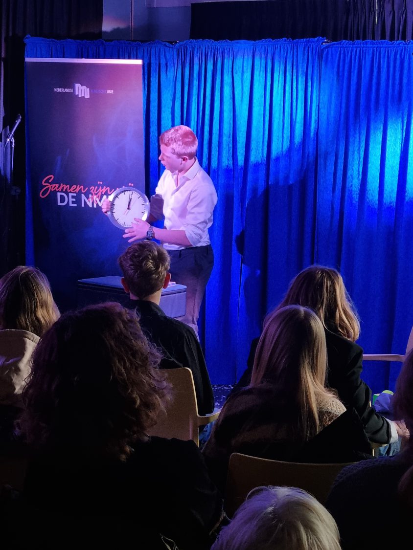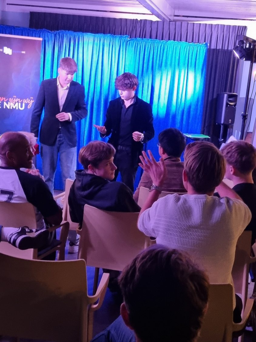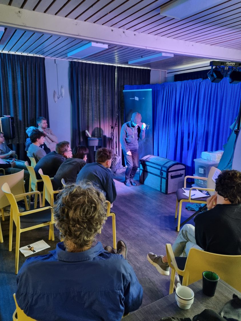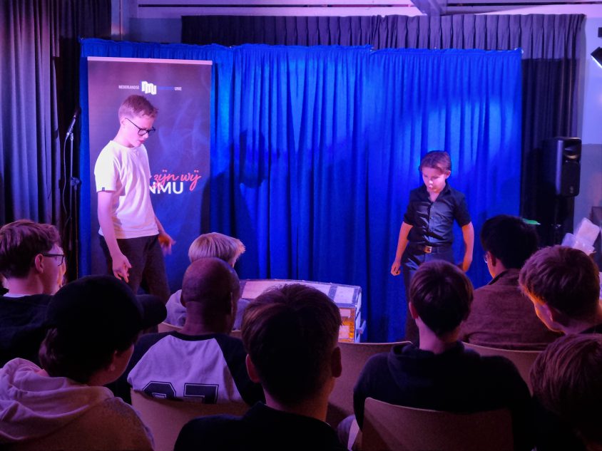 Ik zelf gaf vervolgens een masterclass over het ontdekken van je podiumkarakter. Aan de hand van een praktisch stappenplan leerden de jongeren hun karakter in kaart te brengen en te communiceren in hun act.