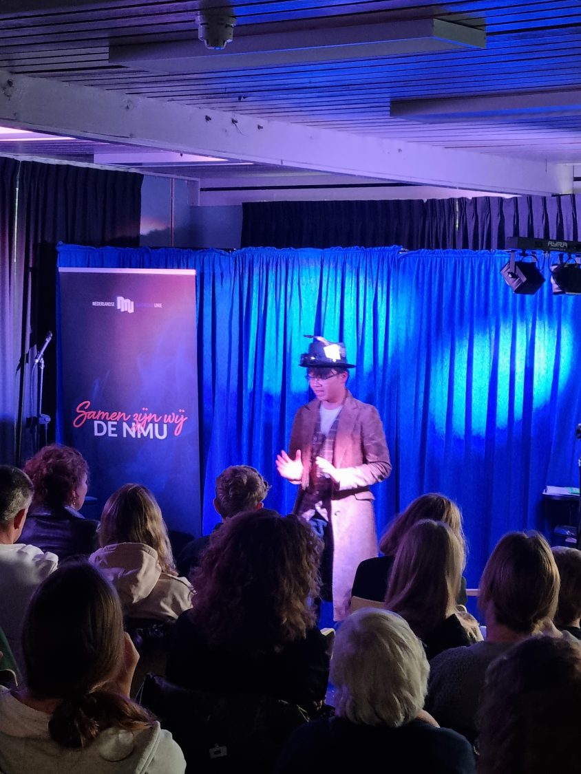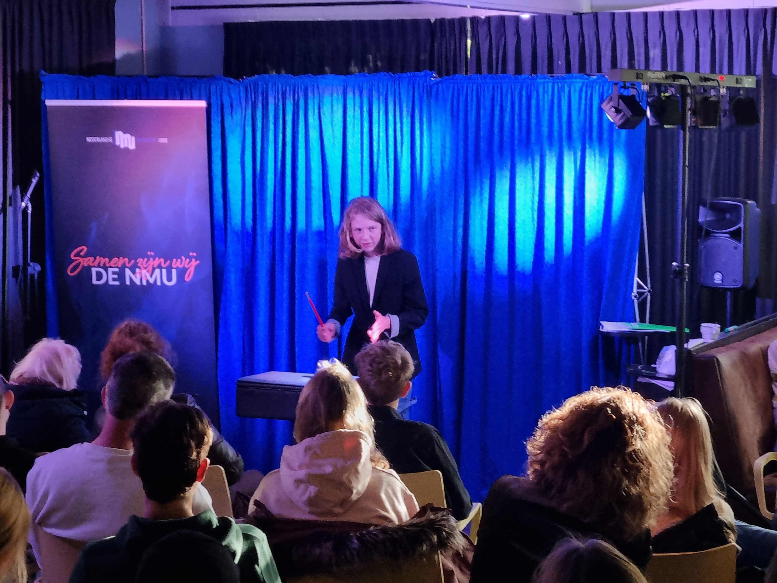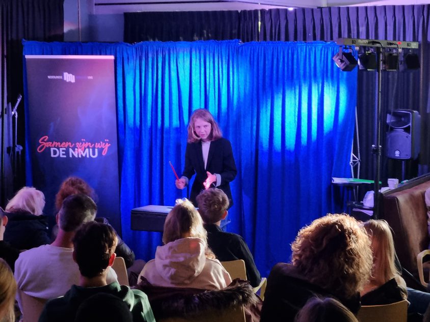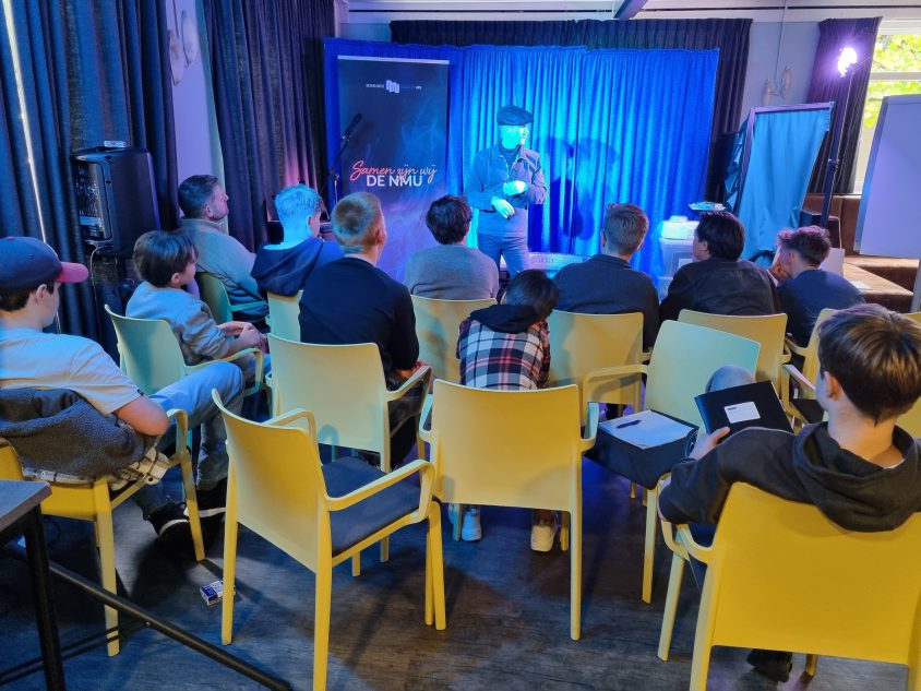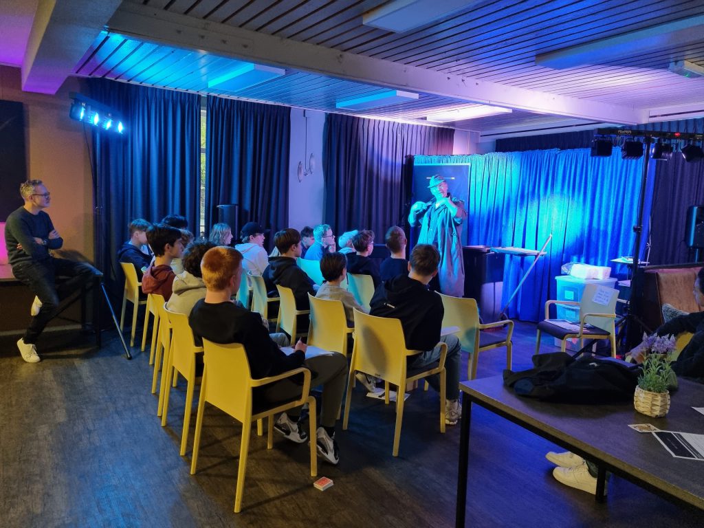 Ik zelf gaf vervolgens een masterclass over het ontdekken van je podiumkarakter. Aan de hand van een praktisch stappenplan leerden de jongeren hun karakter in kaart te brengen en te communiceren in hun act.