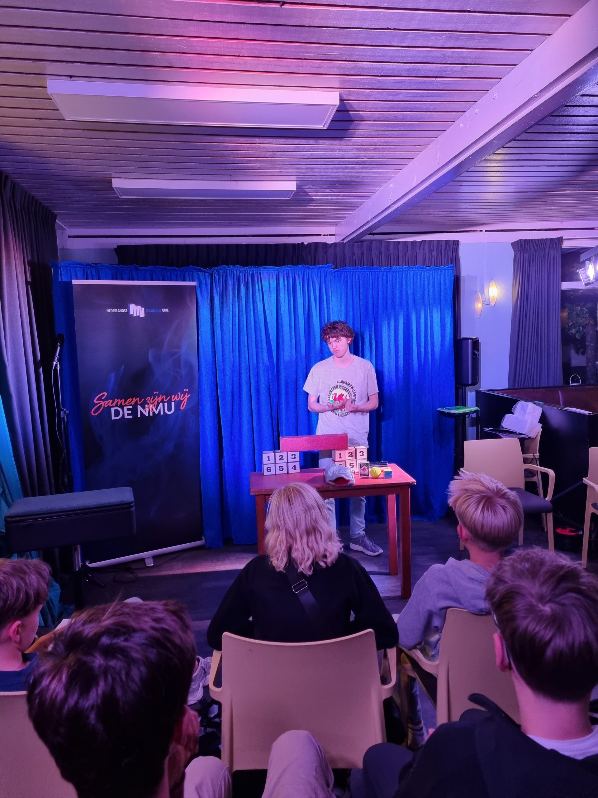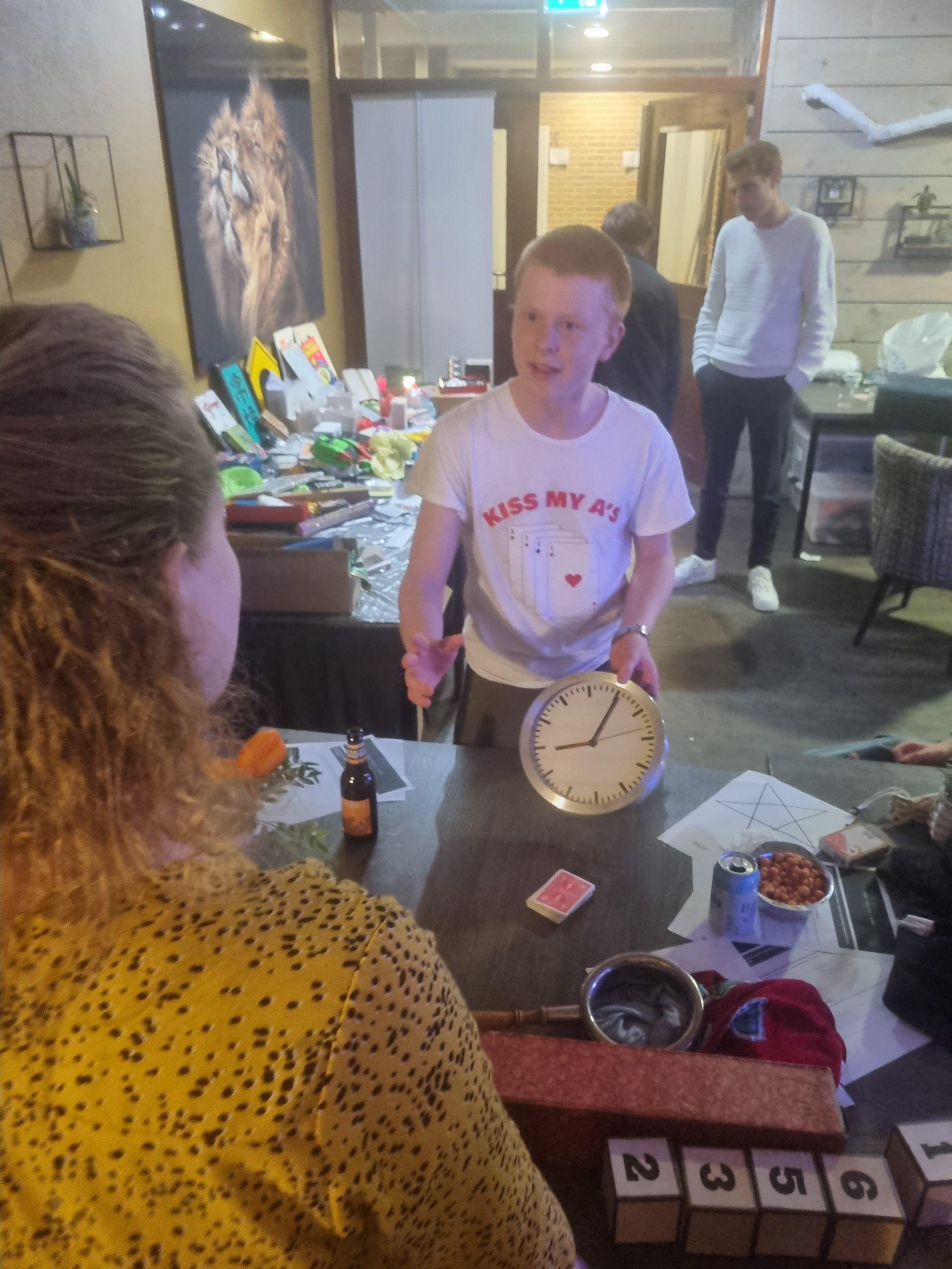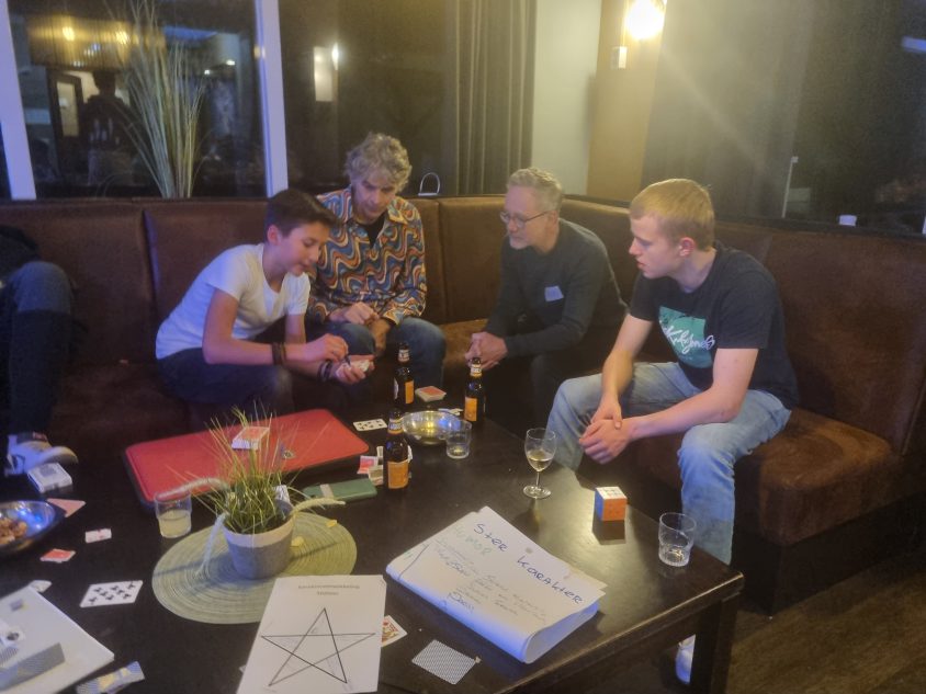 Zaterdagochtend begon met een stevig ontbijt, gevolgd door de eerste ronde van de loterijtafel: een tafel vol tweedehands goochelspullen waar de deelnemers iets uit mochten kiezen.