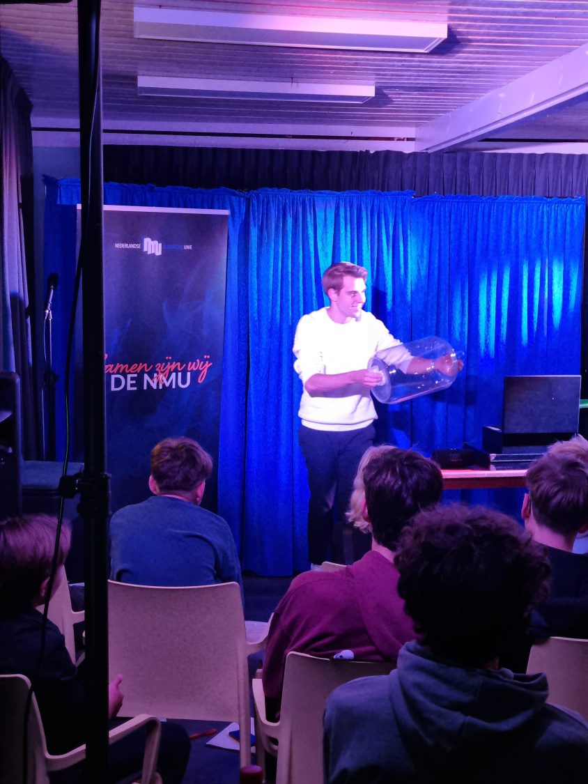 Kay van der Linden gaf een workshop over een wel heel belangrijk onderwerp. Omgaan met onzekerheid tijdens het optreden. Onze zenuwen kunnen ons flink in de weg zitten bij het goochelen. Er werden ervaringen uitgewisseld en tips gegeven hoe je hier het best mee om kunt gaan.