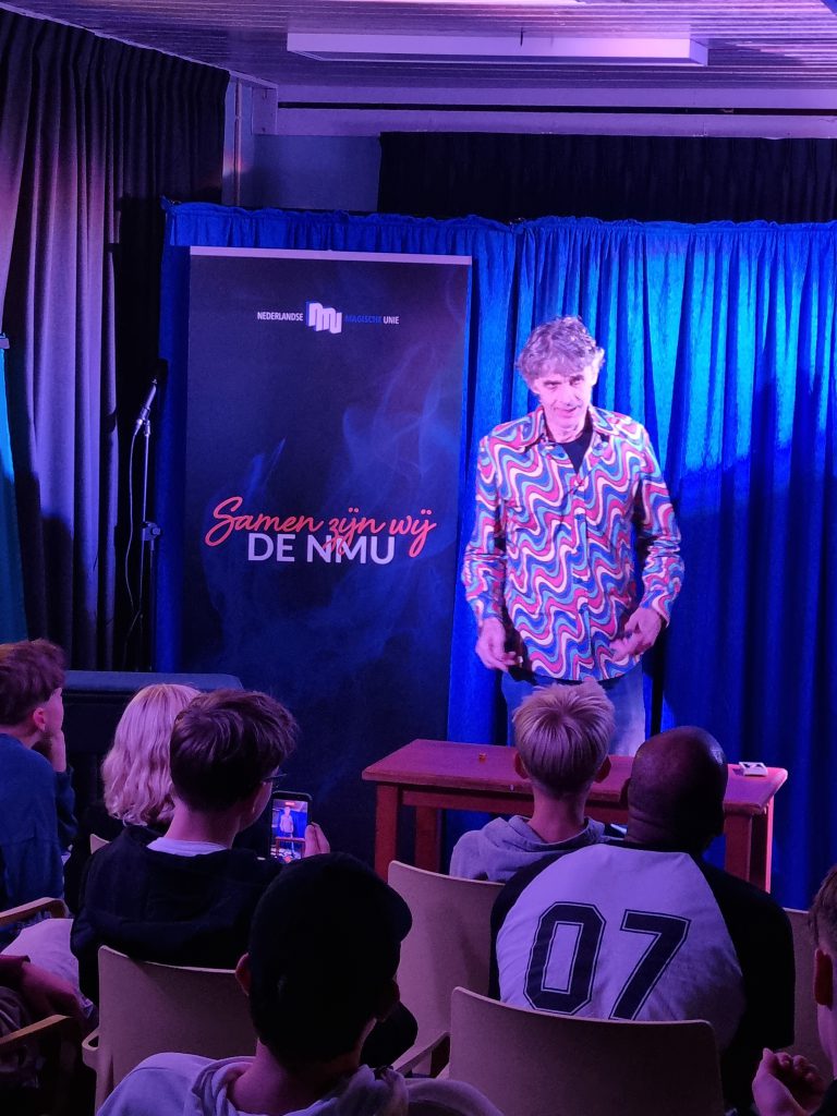 Dion vertelde vol passie hoe hij een act eerst visualiseert voordat die werkelijkheid wordt. Hij gebruikt zijn fantasie om de act levendig voor zich te zien en werkt van daaruit naar zijn persoonlijke doel. Ook had hij een kleine illusie meegenomen die de deelnemers mochten uitproberen. Al snel werd duidelijk dat illusionisme moeilijker is dan het lijkt.