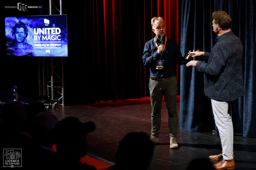 Wow, dat mag je best wel schrijven als je afgaat op de reacties die we op de socials lazen. Voor hen die er niet bij waren (helaas te veel volgens de organisatie); zij hebben echt wat gemist. Dit jaar geen Nederlands kampioenschap maar wel de Hans Klok Trophy. Maar liefst 9 Europese talenten op FISM- niveau deden mee aan deze wedstrijd. Olivier Henning, de winnaar, kreeg uit handen van Hans Klok een mooie geldcheque en oorkonde. Tweede werd Cillian O’Connor uit Ierland en derde het duo David Berger en Emil Kowalewsky uit Duitsland. De jury bestond uit Sabine van Diemen, Niek Takens en Guyllaume Wibowo. De wedstrijd werd gepresenteerd door Gunther Guinée.