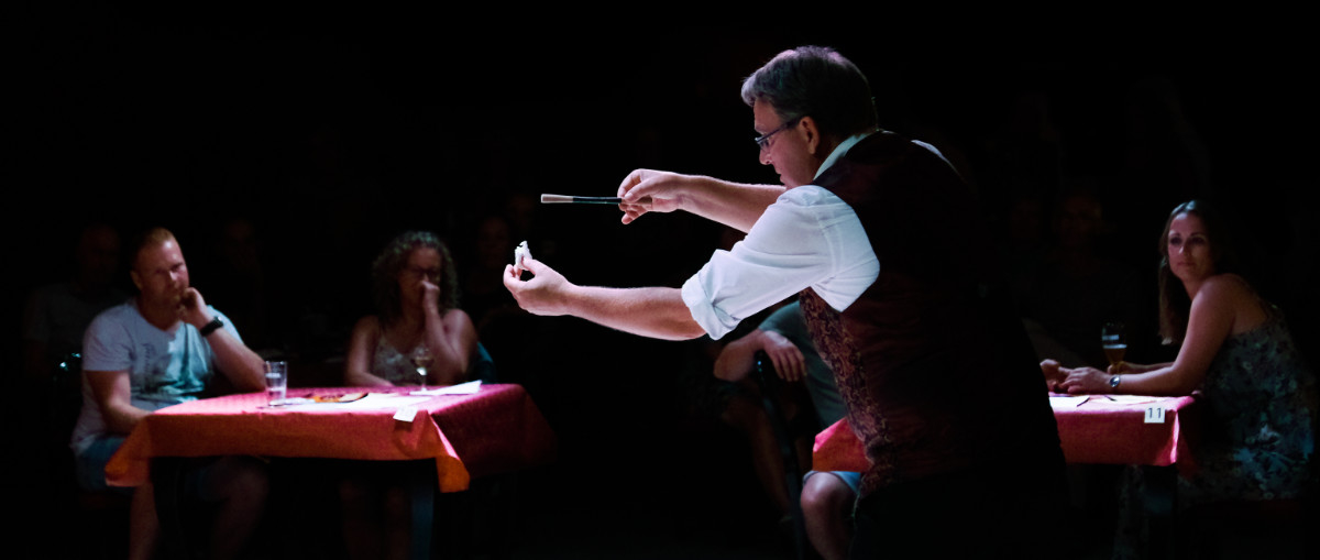 Dompel je onder in de aloude variété-sferen. Geniet, lach en verbaas je de hele avond. Het begint al bij binnenkomst en stopt pas bij vertrek. De acts en het smakelijke 3-gangen diner (door chefkok Kee van de Keeterij in Groningen) lopen vloeiend in elkaar over.