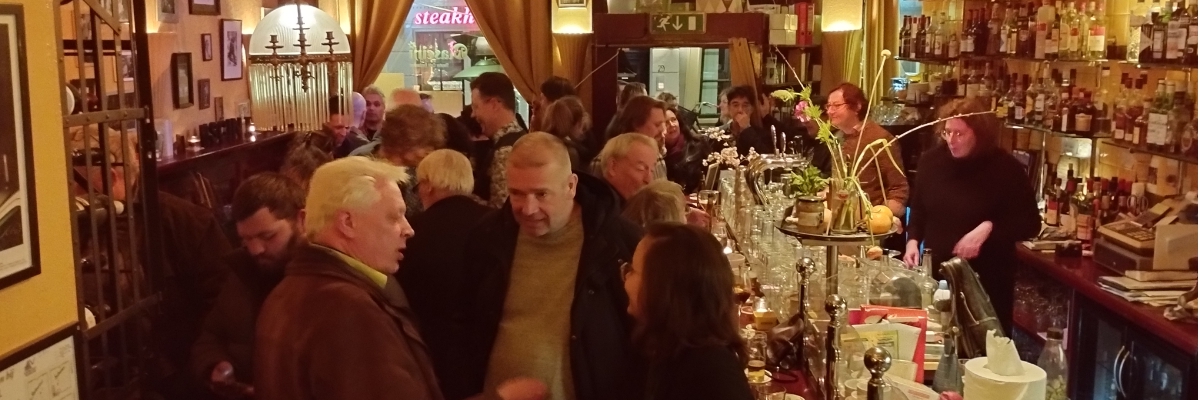 We ontmoeten elkaar bij theatercafé Mascini op de Zeedijk. De meesten zullen het herkennen als het oude Casablanca. Engels is de voertaal en de content van de avonden komt van de leden. We hebben thema-avonden, lezingen (die ook toegankelijk zijn voor niet-leden), optredens en meer.