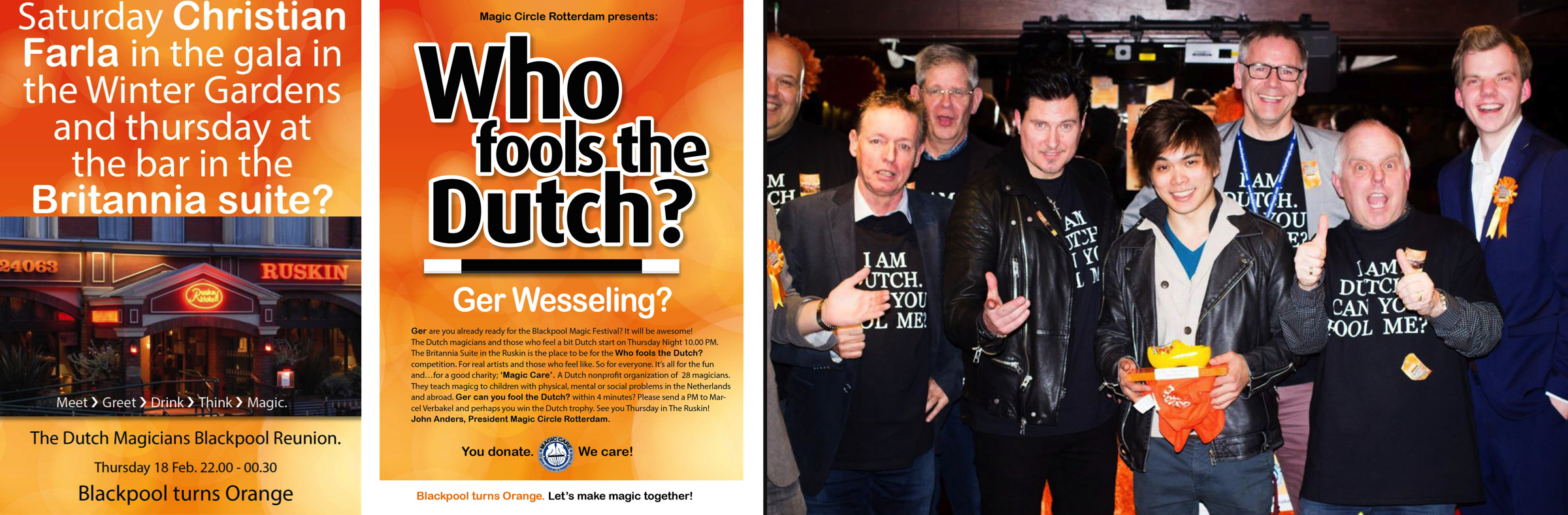 Ik heb daar door de jaren heen heel veel goochelaars en dealers leren kennen o.a. door het organiseren van ‘The Dutch Magicians Blackpool Reunion’, de wedstrijd ‘Who fools the Dutch’ en de ‘Pub Magic Competition’. Helaas dit jaar geen Blackpool jammer want mijn koffer met stroopwafels en kaas voor mijn buitenlandse goochelvrienden stond bij wijze van spreken al klaar. Ook kom ik met heel plezier op Nederlandse goochelcongressen, events en bezoek shows van goochelaars in het theater of circus. Op mijn Facebook ben ik heel actief met goochelnieuws en zoek daarbij altijd naar een creatieve insteek. Met mijn website probeer ik verrassend te zijn.