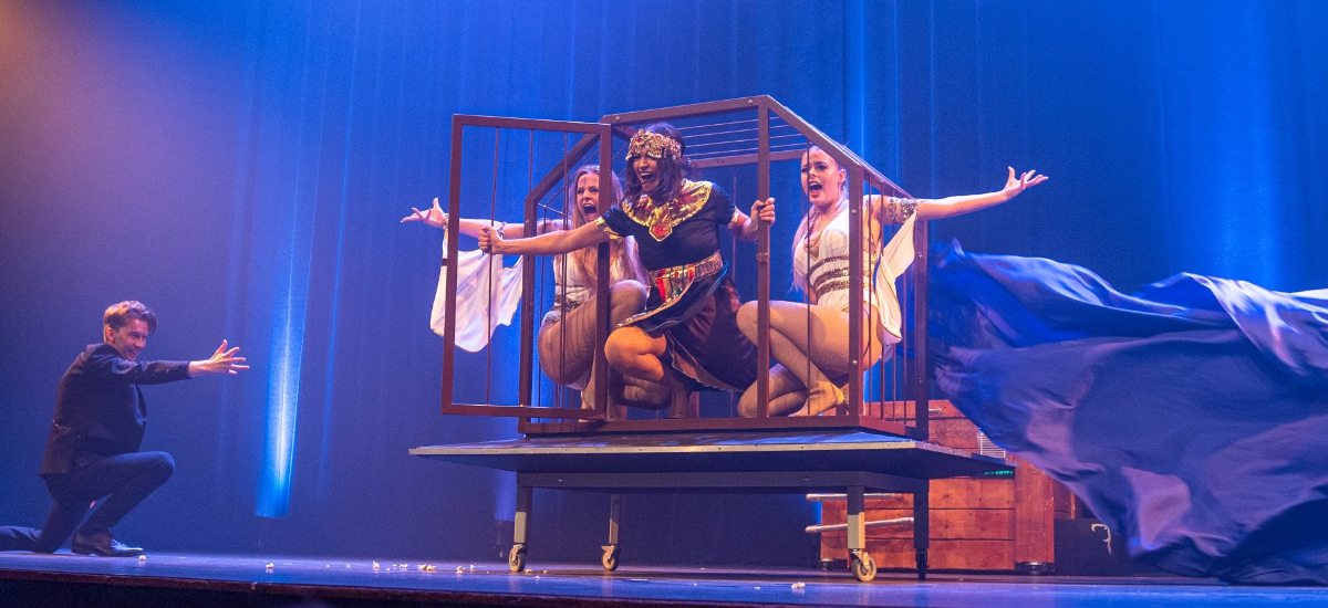 Nigel: Ik heb samen met mijn team bestaande uit mijn assistentes Jacey Vaessen, Merle Delsing en Julie Metsemakers de act zelf gemaakt. Mijn vader en manager hebben ook geholpen om een goede verhaallijn neer te zetten. Voor de act hebben we het thema tijdreizen gekozen. We beginnen heel rustig met een zichtbare tijdmachine die aan het opstarten is. Daarmee belanden we per ongeluk in het oude Egypte en slaat de sfeer gelijk om naar drama. We maken gebruik van een voice-over die uit de tijdmachine komt. Dit maakt het wat makkelijker om het verhaal uit te leggen. Wel proberen we ervoor te zorgen dat het een illusieshow blijft en geen theatershow. Met dit thema moet je veel met licht doen omdat je in 10 minuten tijd door verschillende tijden reist. En om dan duidelijk te maken dat je in een compleet andere tijd zit maak je daar ook een andere lichtsetting voor. Dat maakt de act nog beter.