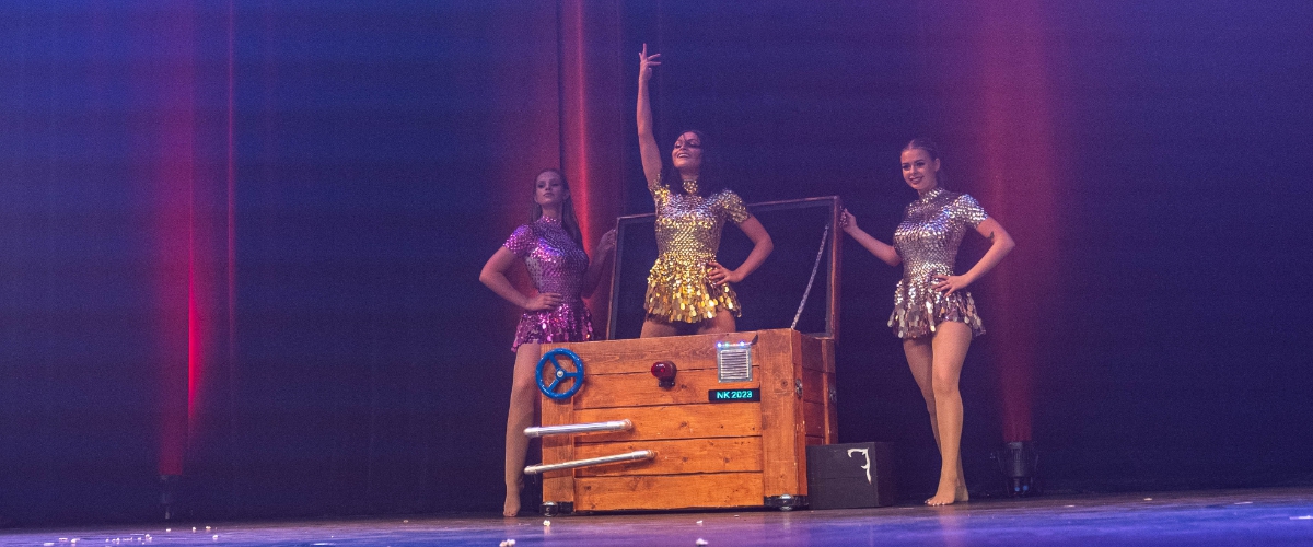 Met het thema ’tijdreizen’ hebben we in (openlucht) theaters gestaan. En eigenlijk de beste delen van die show hebben we in de 10 minuten EK act gestopt. We hebben een aantal illusies moeten schrappen zoals ‘de vliegende doos’. Wel hebben we alsnog zeven illusies verwerkt in de act en maar liefst 15 outfits.