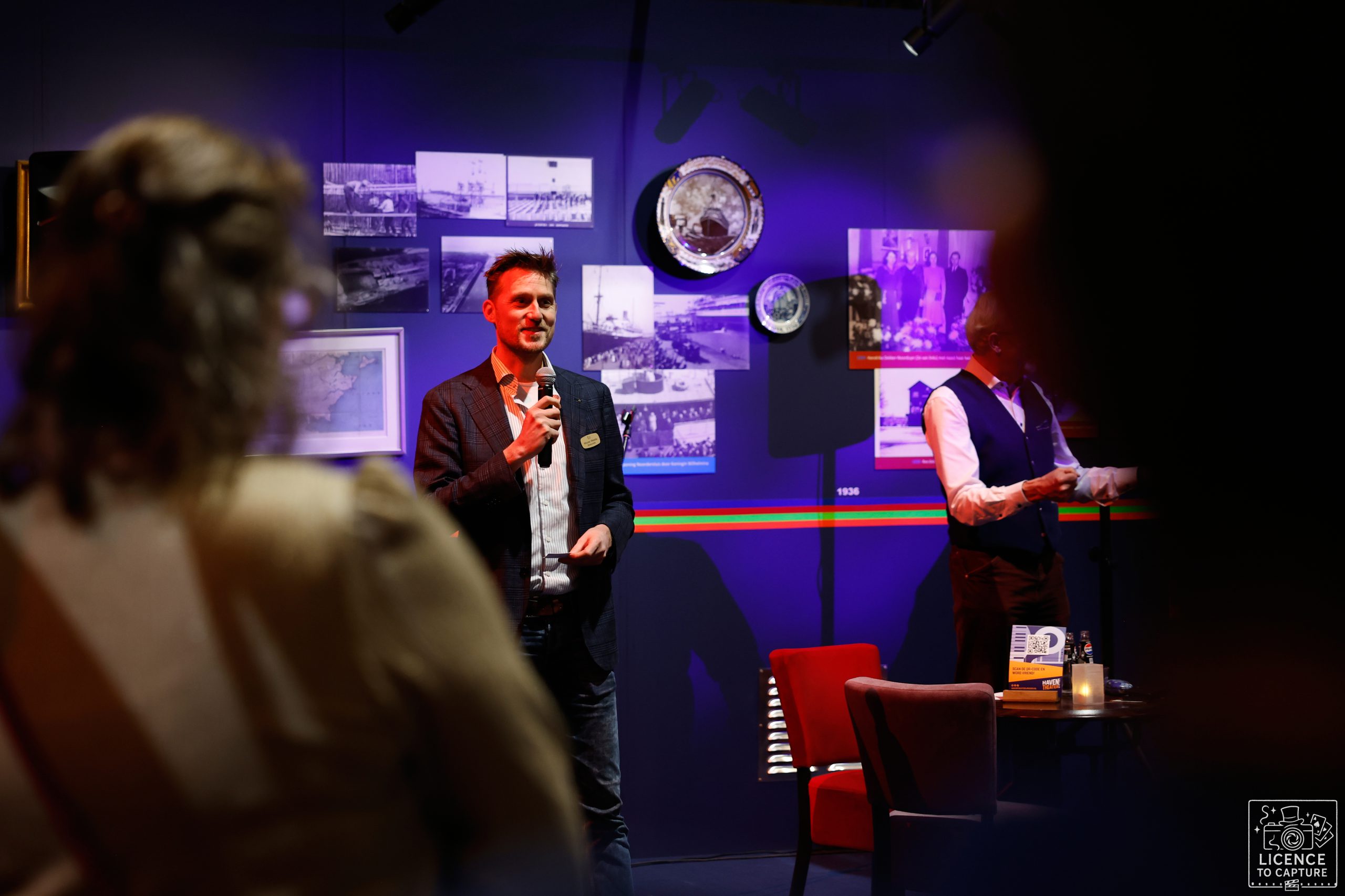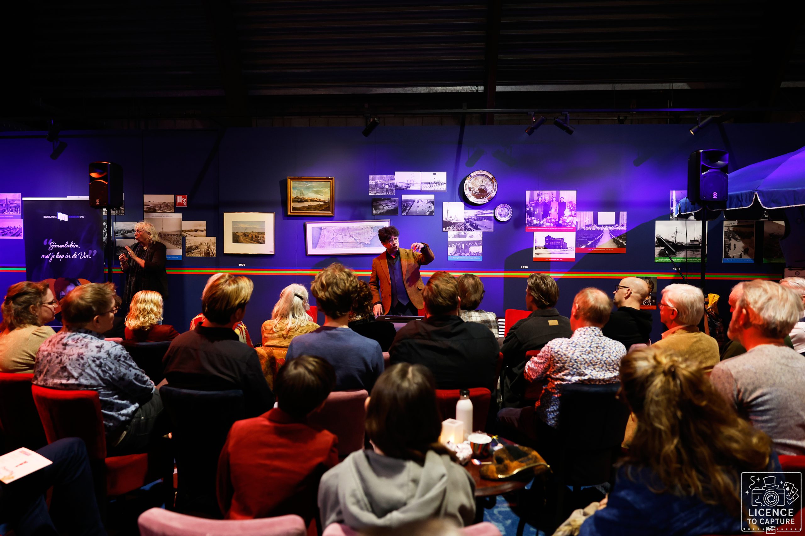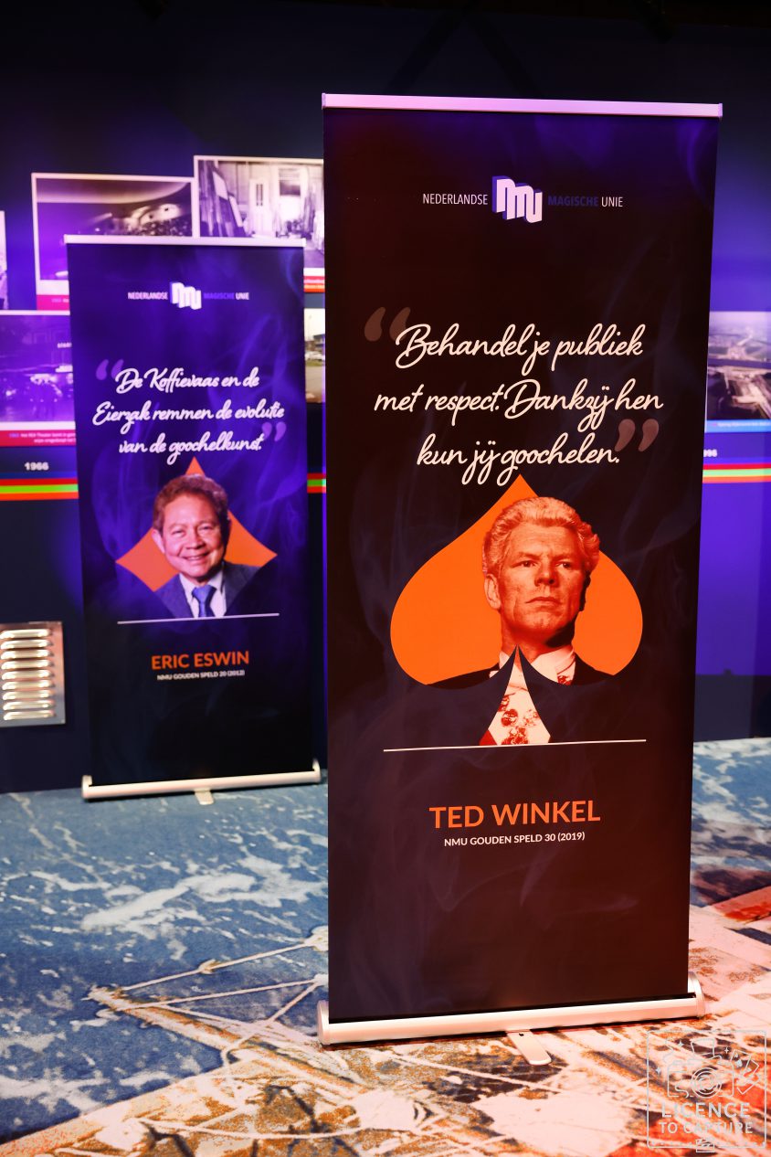 Het NMU Nieuwjaarstreffen werd dit jaar verzorgd door de Noord Hollandse Bond van Goochelaars in samenwerking met de Stichting Boulevard of Magic en was tot in de puntjes verzorgd. Bij binnenkomst kreeg iedereen een mooi programmaboekje en ‘dagplanner’. Het huidige Haventheater IJmuiden wordt gerenoveerd dus is een oude tennishal omgebouwd. Maar dat deed niets af aan de sfeer, integendeel. Centraal in de gezellig verlichte zaal stond de originele theaterbar en er was voldoende ruimte om aan een (sta)tafel lekker bij te praten. Rondom waren alle NMU-banners neergezet met daarop de NMU Gouden Speld dragers. Deze mogen op deze dag natuurlijk ook niet ontbreken. Waar zou de NMU zijn zonder hen?