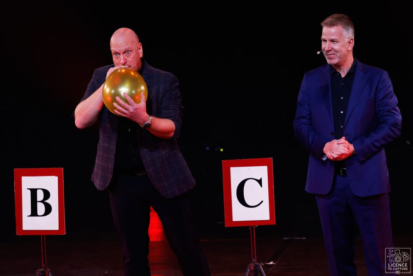 alle 620 stoelen waren bezet! De avond werd geopend door Gerhard en Herman (zonder groot showballet maar wel iets van te zien op de Facebookpagina van de NBG) waarin zij iedereen welkom heetten en de sponsors bedankten die deze avond mede mogelijk hadden gemaakt. Vervolgens nam Gunther Guinée de microfoon over en de show verder zeer vakkundig presenteerde.